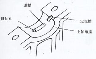 圍。座孔分開面上開有軸瓦定位槽,瓦唇與座孔槽對正。同時要求軸瓦油孔與座孔上油孔對正,參見圖2-3-9 (對YC6L機,軸瓦座上開有油槽,故軸瓦油孔不存