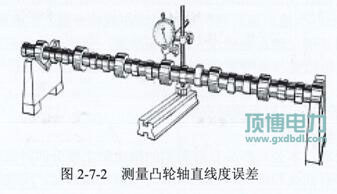 (2)檢查凸輪軸直線度:見圖2-7-2。直線度誤差極限控制在0.05mm之內為好。